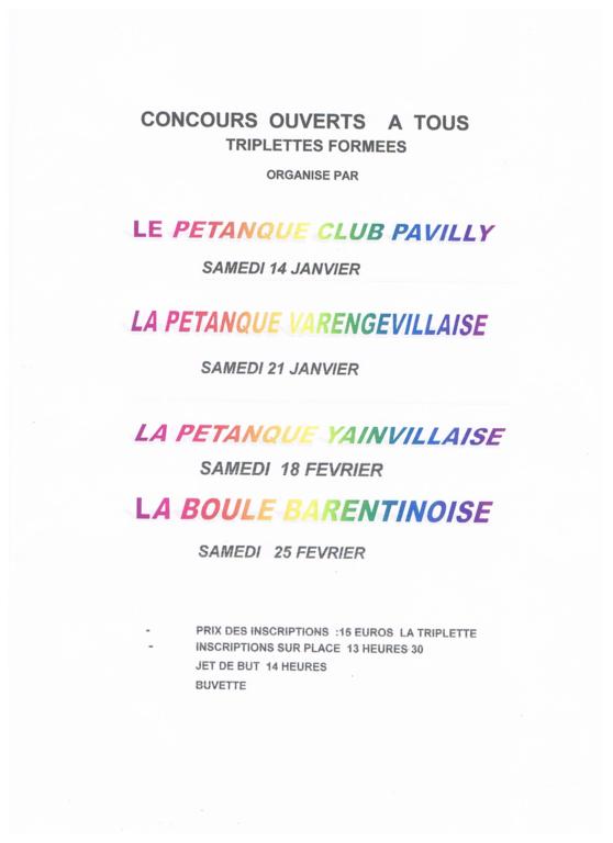Concours en triplettes formées ouvert à tous.