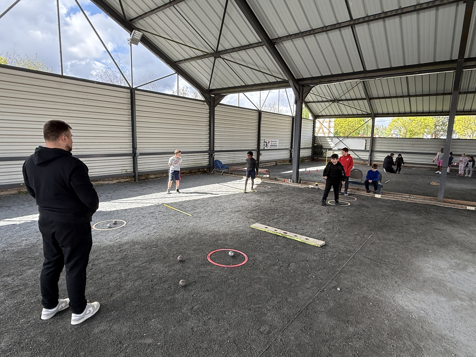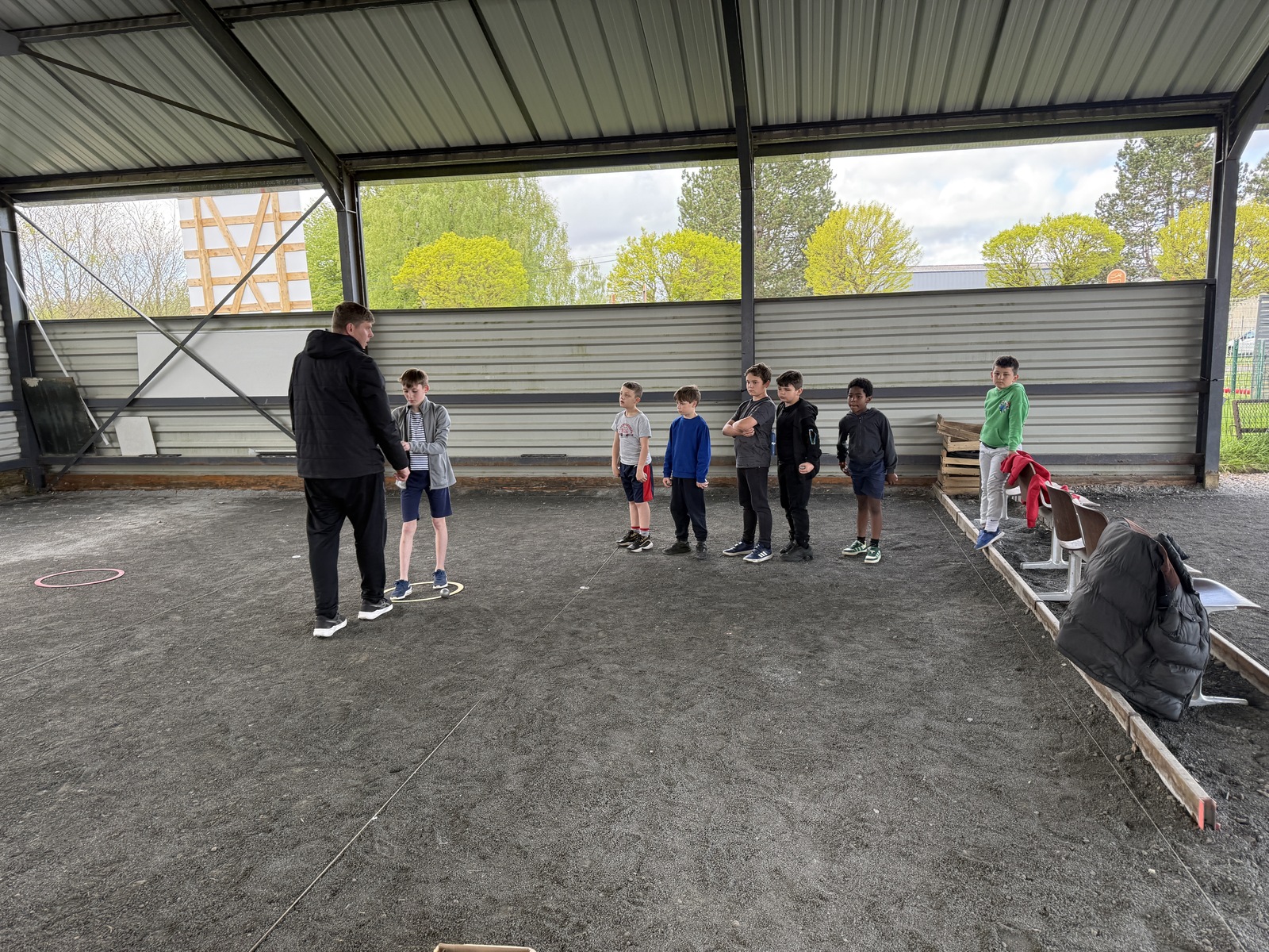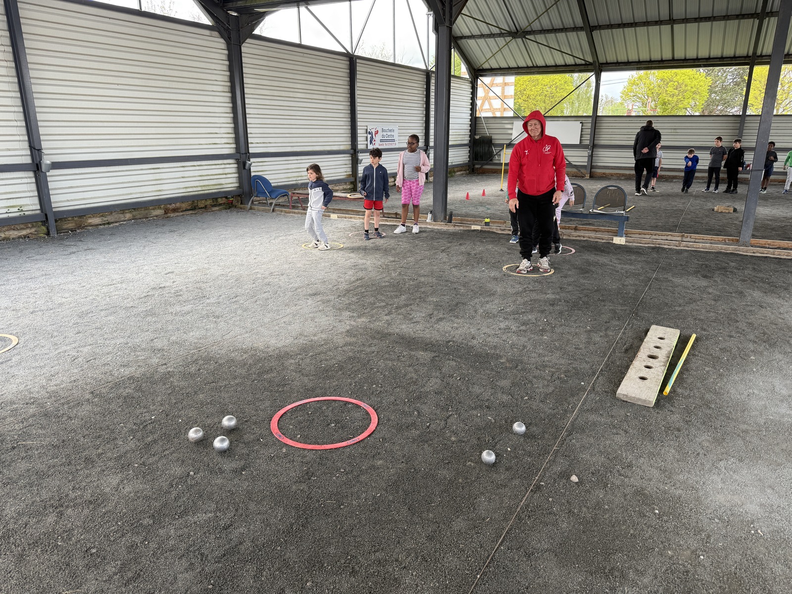 Guillaume et Ghislain, initiateurs du club, étaient donc en charge de permettre à la quinzaine de jeune judoka et leur professeur, Jean-Pierre, d'apprendre les fondamentaux de la pétanque.