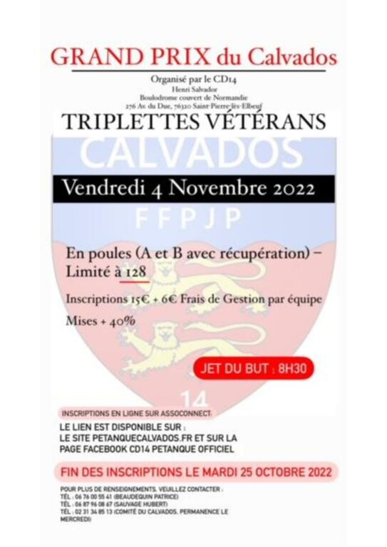 ANNULE - GRAND PRIX CD 14 - triplette Vétéran