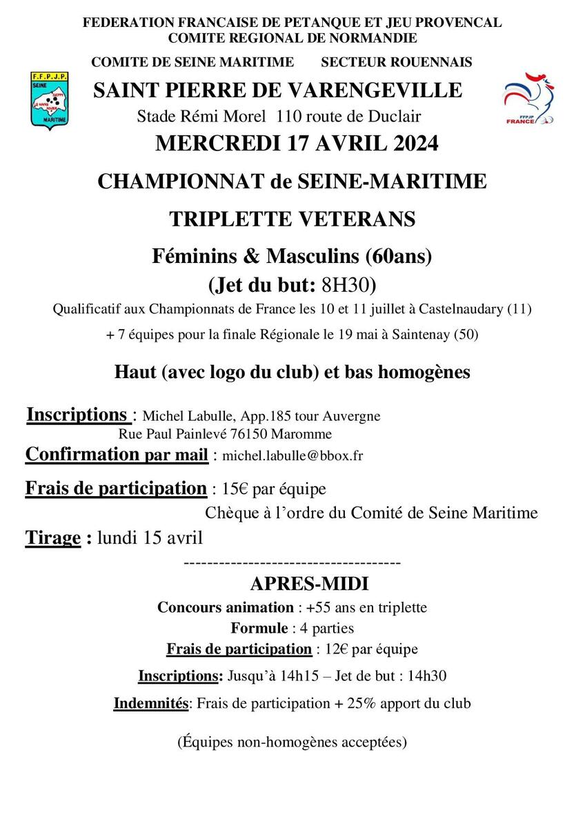 Championnat Comité Vétérans 60 ans triplette